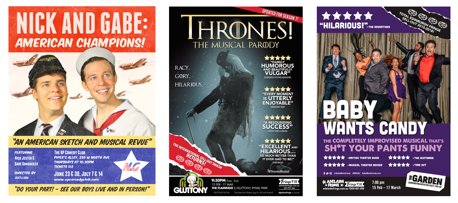 POSTER DESIGNS: Designed posters & marketing materials for various theatre/improv groups